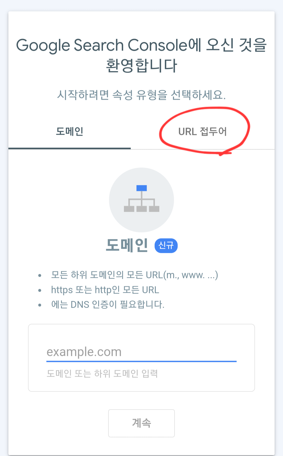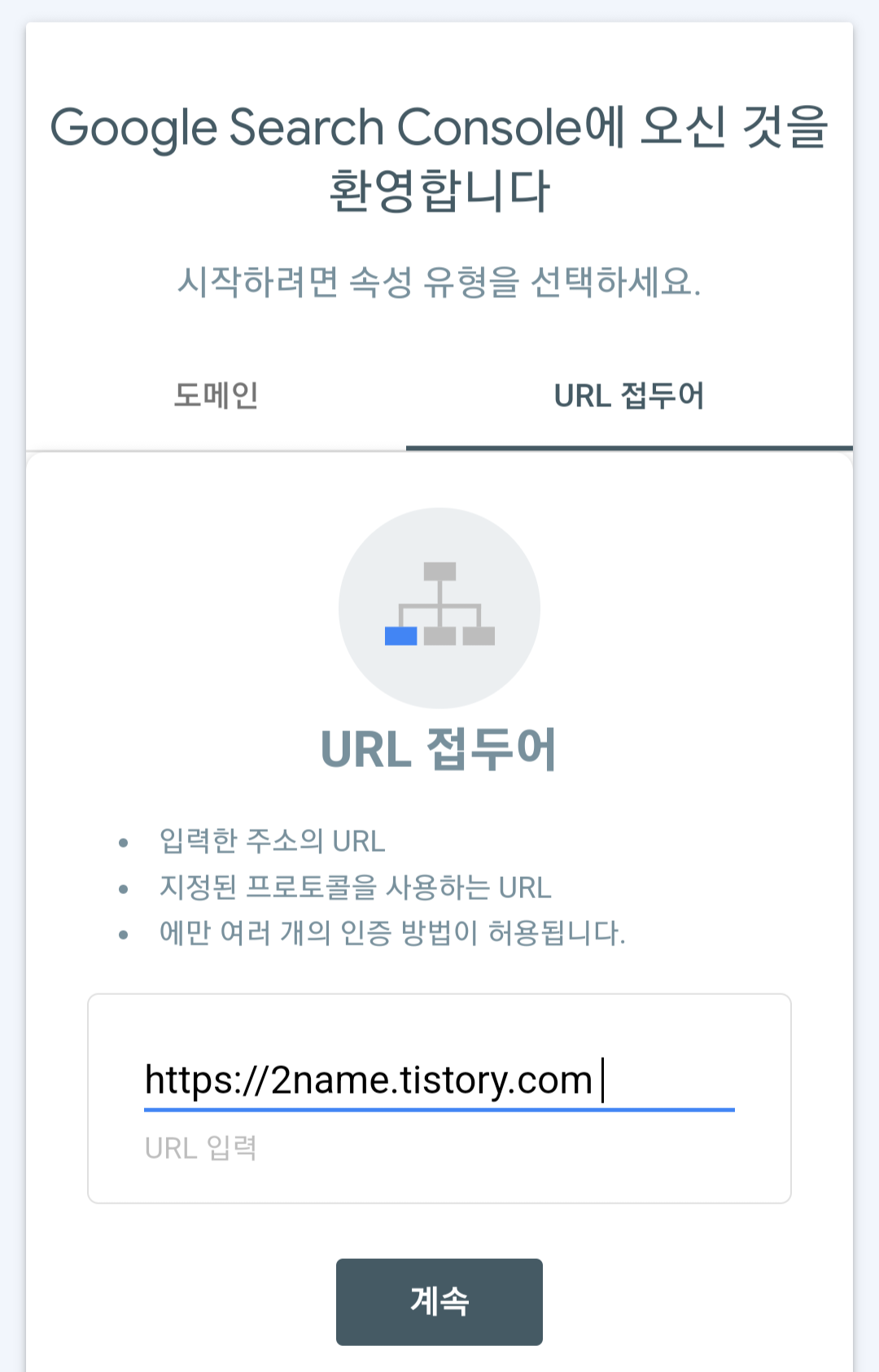 아래와 같은 화면이 나오면 URL 접두어를 클릭하고 자신의 티스토리 블로그 주소를 입력합니다.