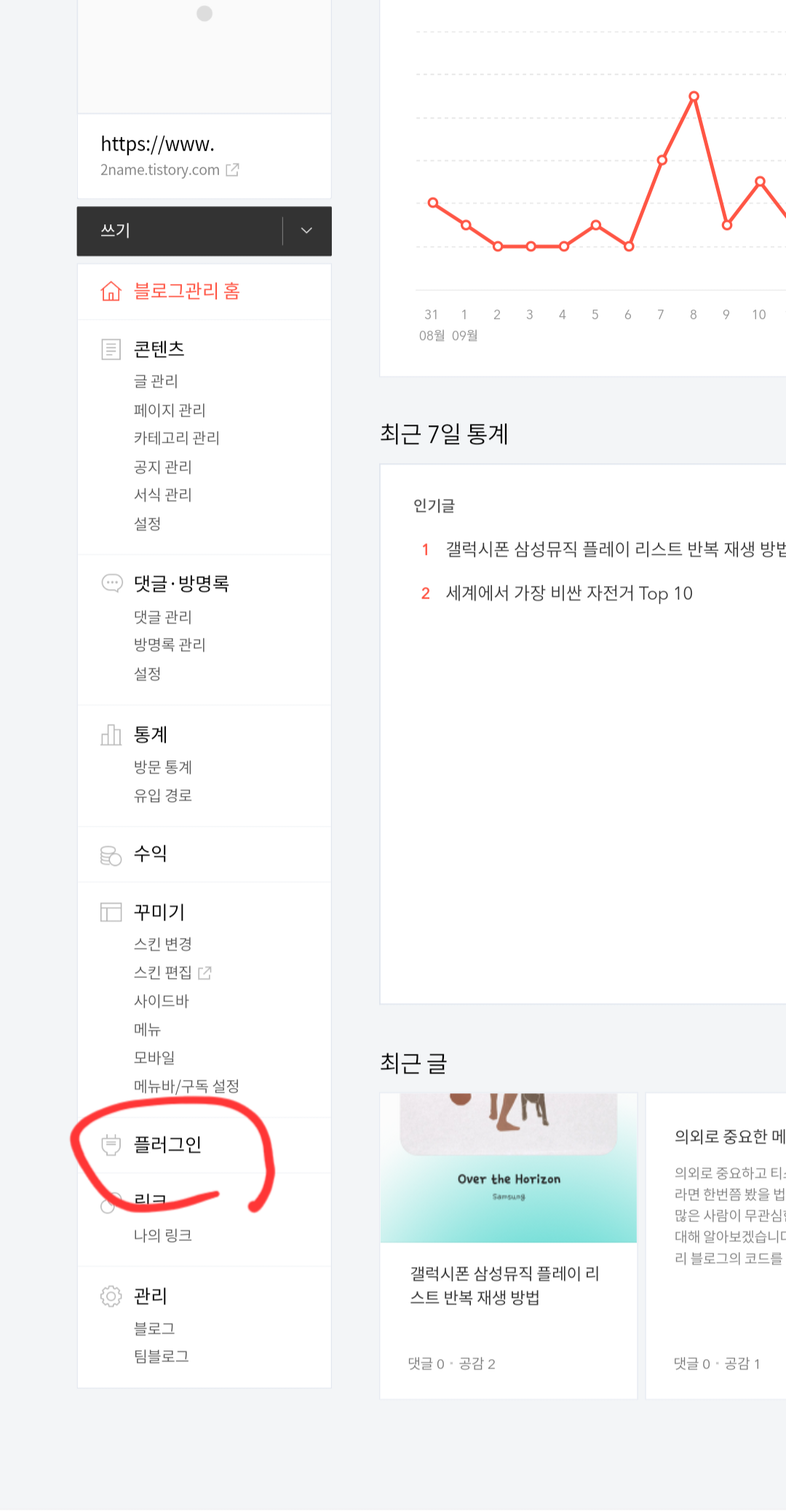 4. 티스토리 관리자 모드로 들어가 주세요.
