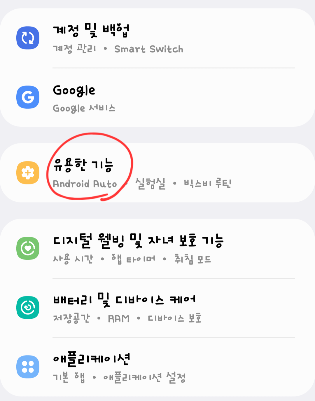 [설정] - [유용한 기능]에 들어갑니다.