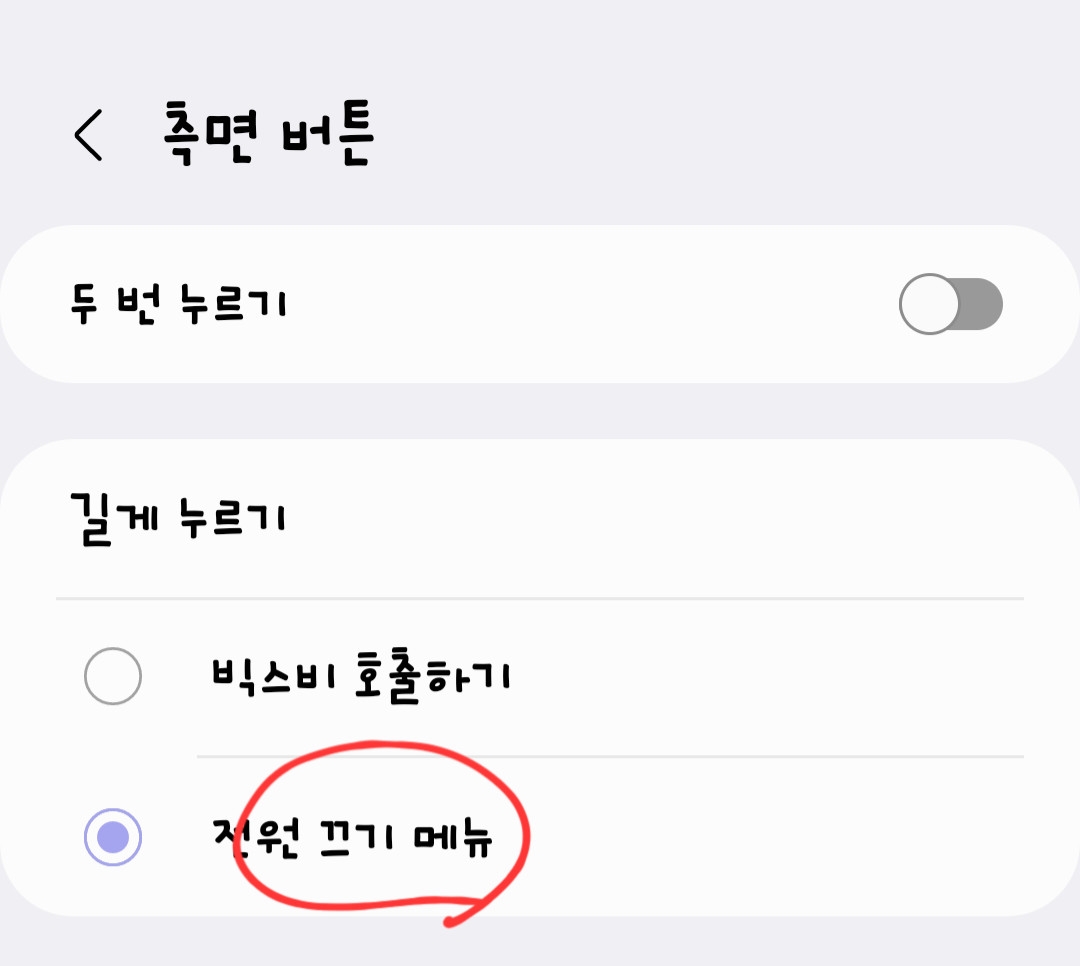 사실 처음 설정을 전원 끄기 메뉴로 해두었다면 불편을 겪을 일이 없었을 텐데요.