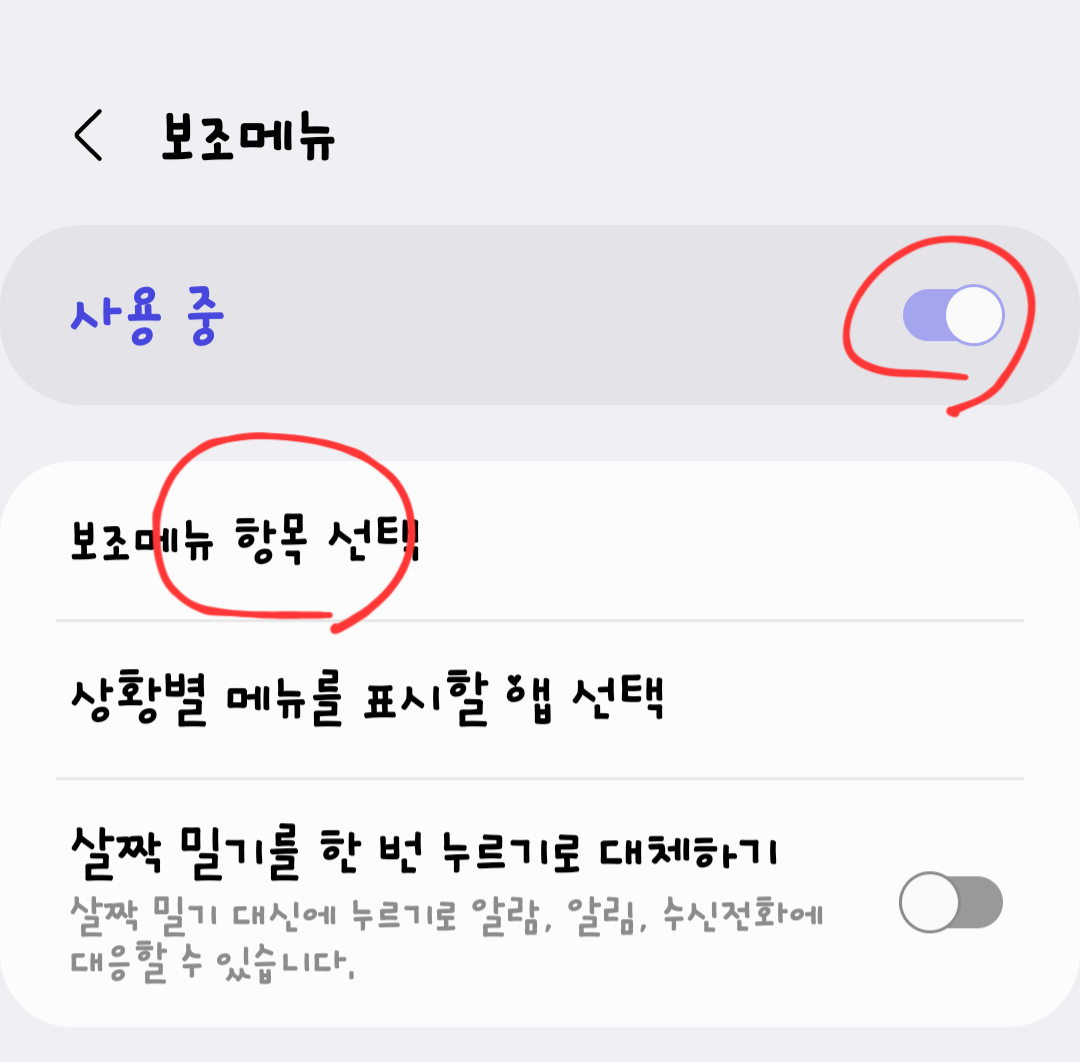 [보조메뉴]를 눌러주세요.