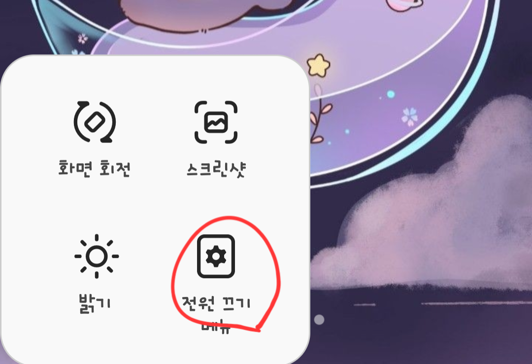 그럼 아래 화면과 같이 폰 화면 보조메뉴에서 전원을 끌 수 있습니다.