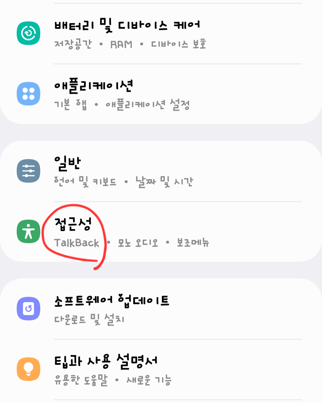 [설정] - [접근성]에 들어갑니다.