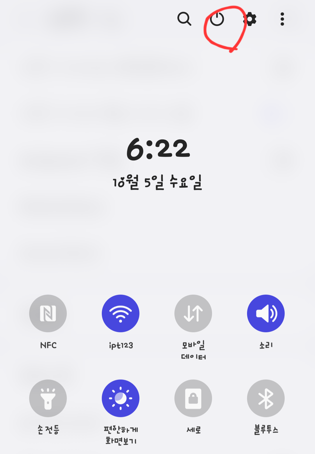 3. 알림 메뉴의 전원 버튼 사용하기