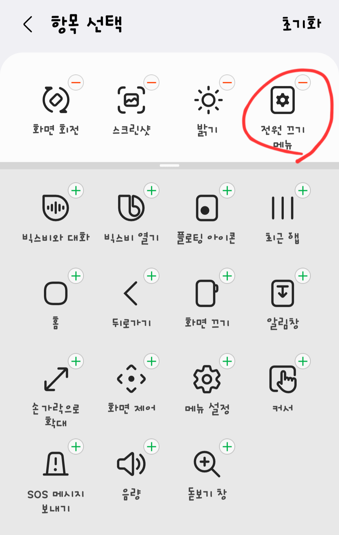 4. 보조 메뉴에 전원버튼