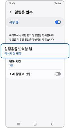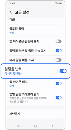 특정 앱의 알림이 주기적으로 계속 울린다면, 알림음 반복(알림 리마인더) 설정을 확인해 보세요.