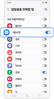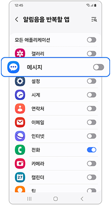 3단계) 알림음을 반복할 앱(리마인더를 받을 앱)을 눌러 해당 앱이 활성화되어 있다면 해제해 주세요.
